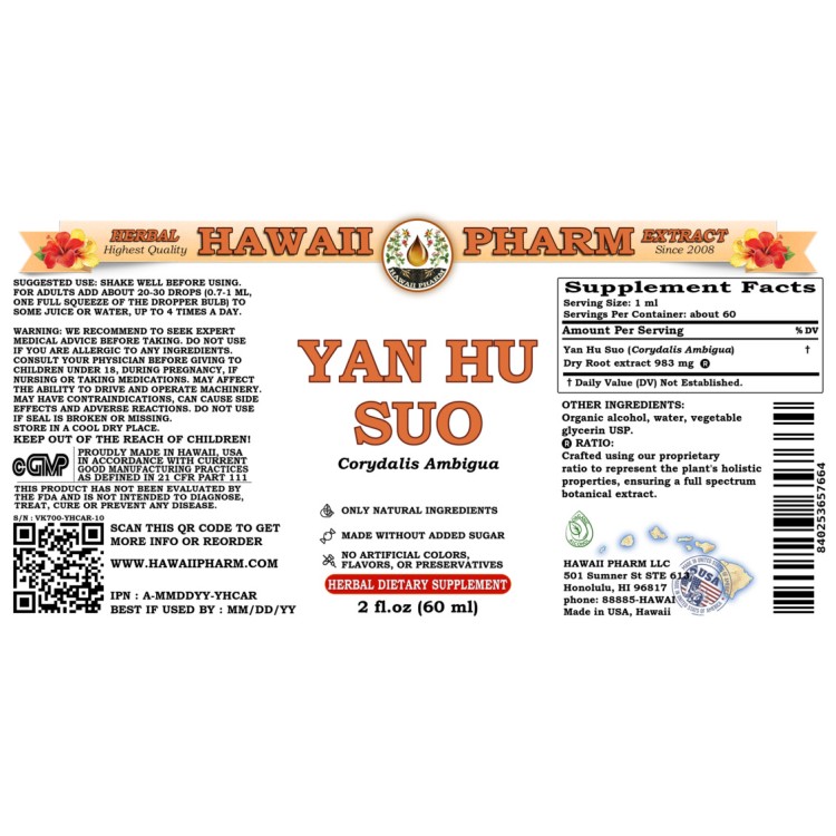 • High Quality Yan Hu Suo Tincture Supplement - we use classic conventional methods of extraction! We meticulously produce our extracts according to precise standards where each herb is extracted according to the distinct characteristic of each plant!