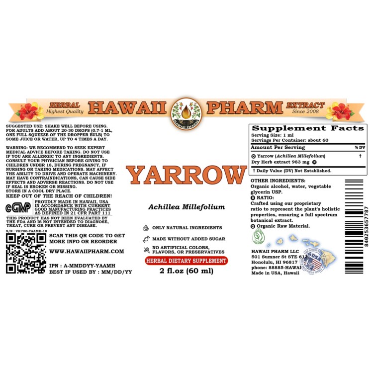 • Expertly extracted under strict quality standards and procedures from Yarrow dry Herb. We meticulously produce our extracts according to precise standards where each herb is extracted according to the distinct characteristic of each plant.